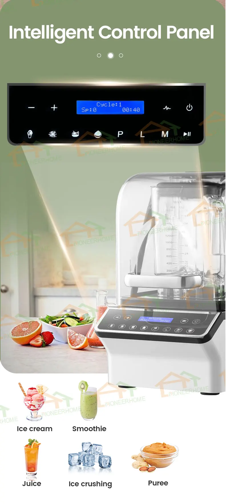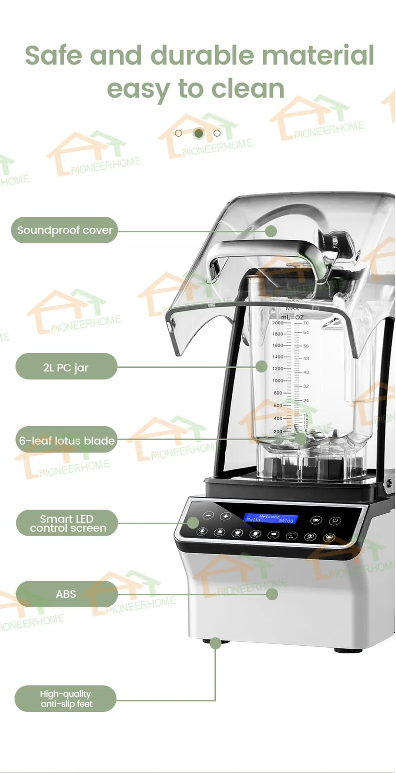 Commercial Electric Large Capacity Ice Smoothie  Juice Maker Blender Machine With Soundproof Cover