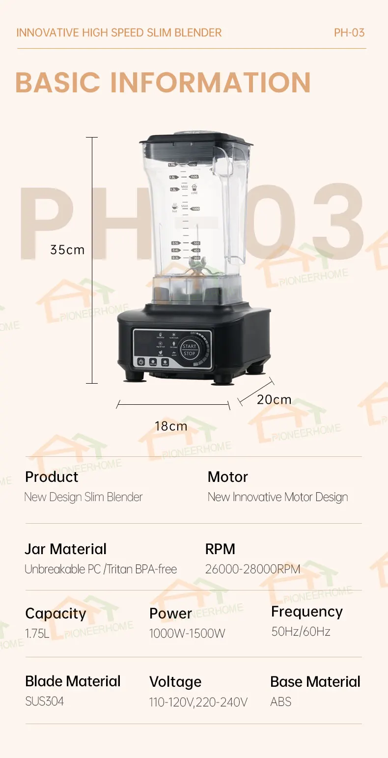 Household Blender Professional Smoothie Maker 1.75L Multi Functional Blender Small Size