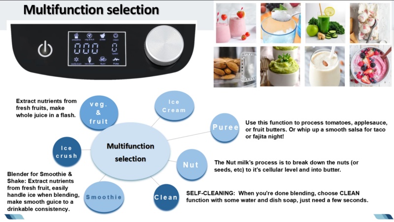 Hot Sale Commercial LED Screen Blender 1800w High Power Blender 2L Big Capacity Electric Smoothies Blender